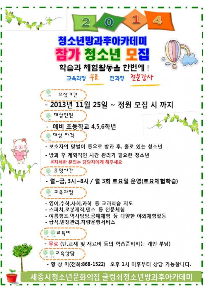 2014 청소년방과후아카데미 참가 청소년 모집 페이지 정보 작성자 관리자 댓글 0건 조회 9,713회 작성일 13-11-13 02:11 목록 본문 이전글가족역량강화프로그램 "가족자활어울마당" 참가자 모집 13.12.03 다음글세종시청소년문화존 "페스티벌 ZONE" 안내 13.11.07 댓글 0 댓글목록 등록된 댓글이 없습니다.