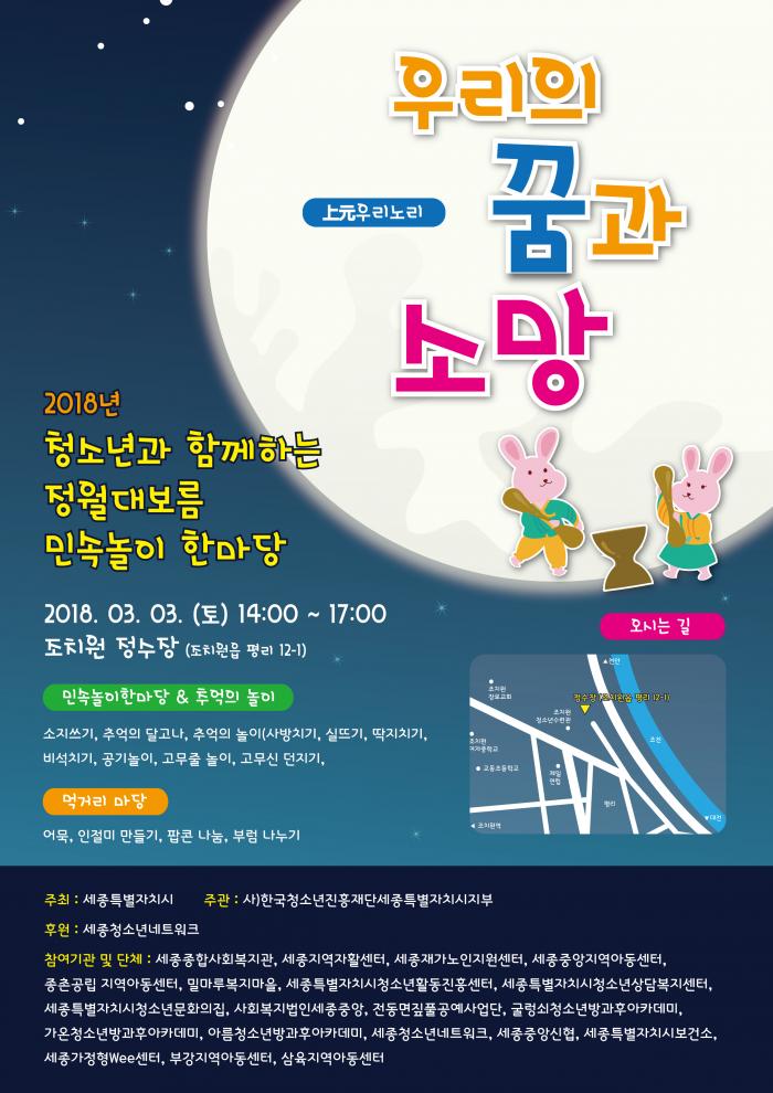 2018년 청소년과 함께하는 정월대보름 민속놀이 한마당 페이지 정보 작성자 관리자 댓글 0건 조회 10,650회 작성일 18-02-23 04:21 목록 본문 이전글2018년 4色 빛깔 부여 시티투어 운영 19.08.21 다음글2018년 세종지역자활센터 세입 세출 예산 공고 19.01.09 댓글 0 댓글목록 등록된 댓글이 없습니다.