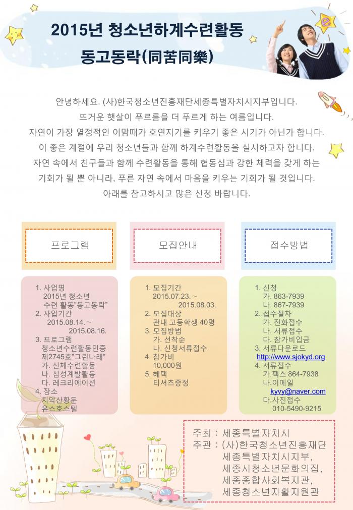 2015년 청소년하계수련활동 동고동락 모집의 건.