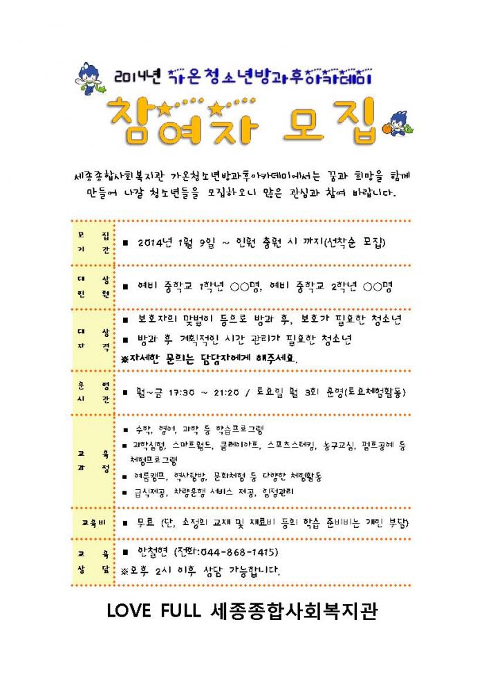 2014 가온 청소년방과후아카데미 참가 청소년 모집 페이지 정보 작성자 관리자 댓글 0건 조회 10,938회 작성일 14-01-20 06:12 목록 본문 이전글2014 정월대보름민속놀이한마당 14.02.03 다음글청소년드림스케치 "전문직업인 만남" 13.12.27 댓글 0 댓글목록 등록된 댓글이 없습니다.